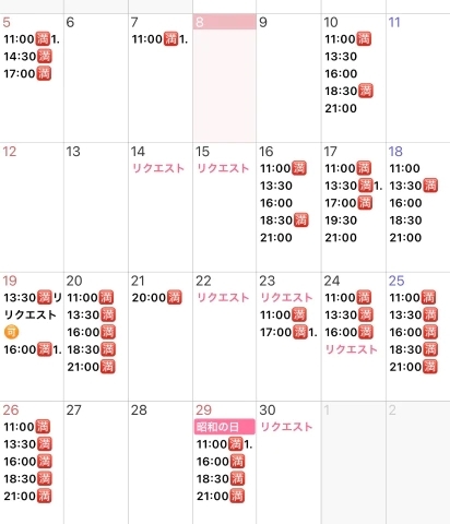 直近の出勤は10日13:30/16:00/21:00🈳です🫶